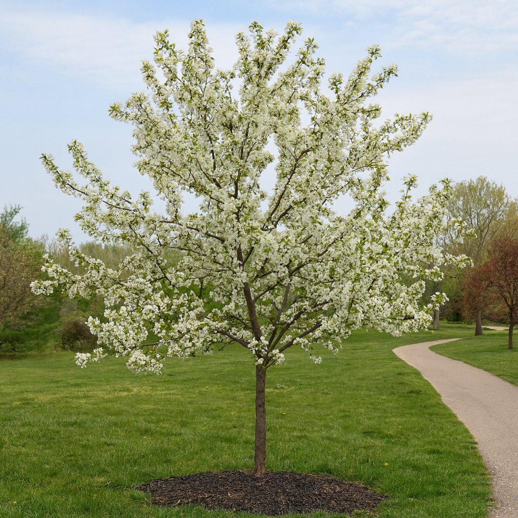 The Callaway Crabapple Tree is a beautiful, multi-season ornamental tree known for its abundant spring blossoms, glossy green foliage, and persistent red fruit that lasts into winter. With its rounded canopy and manageable size, it’s a favorite for landscapes needing elegance, bird appeal, and low-maintenance structure.