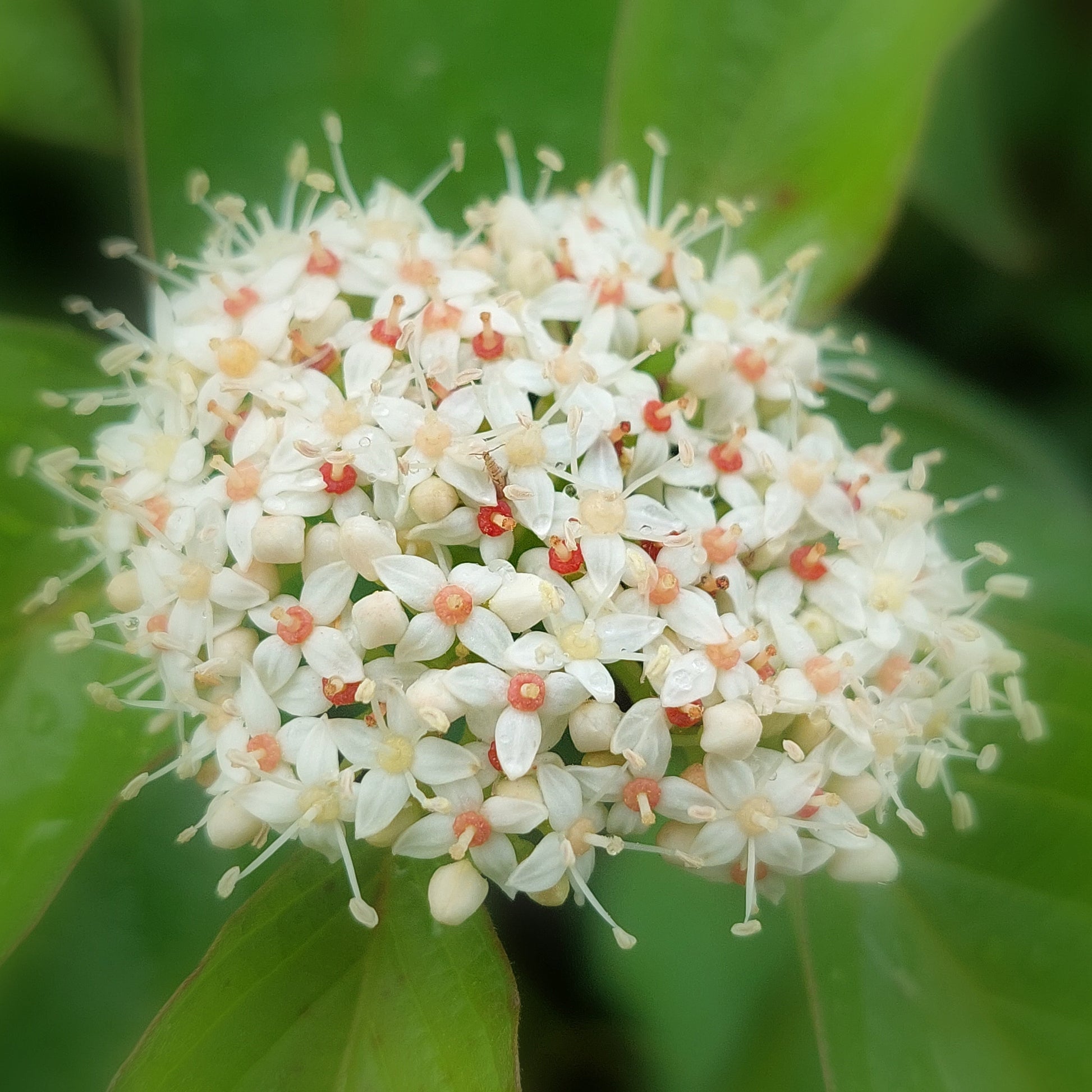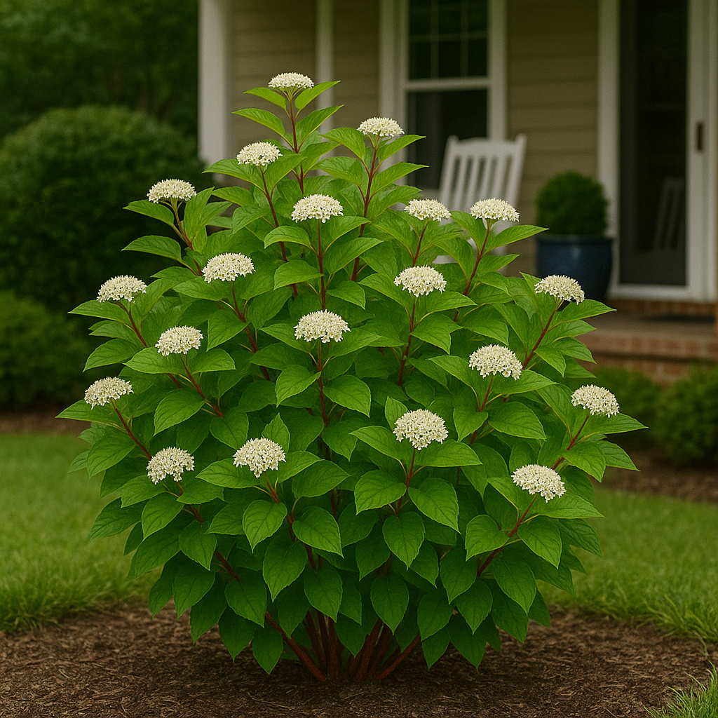 The Cardinal Red Twig Dogwood is a standout deciduous shrub prized for its vivid red stems that ignite the winter landscape. Native to North America, this cultivar was selected for its especially vibrant twig color and upright habit. In spring and summer, it sports lush green foliage and creamy white flower clusters, followed by white berries beloved by birds.