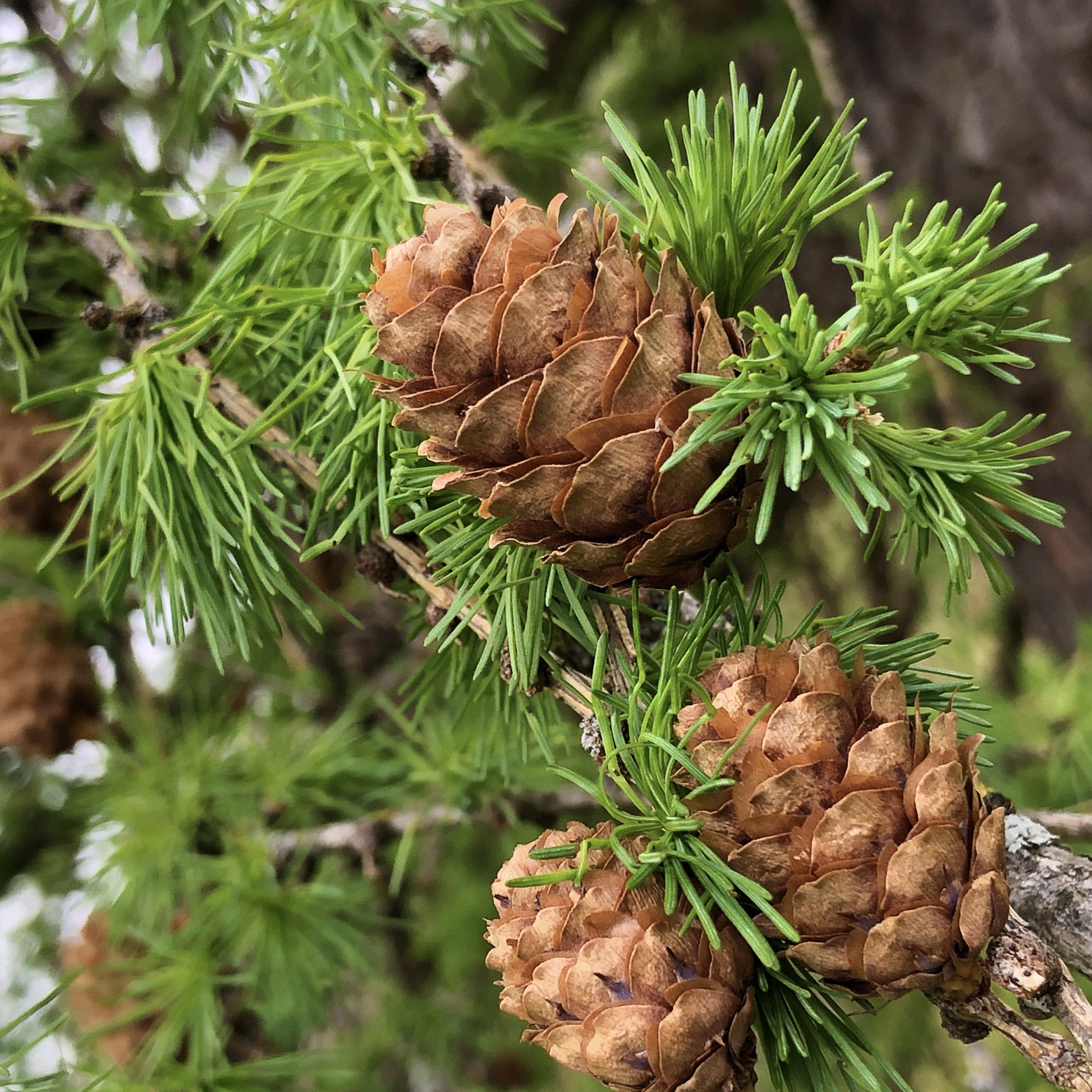 Yellowish male cones; spring |