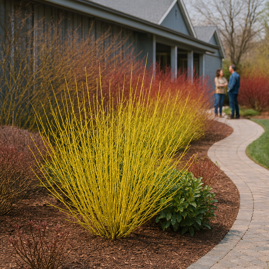 Perfect for mass plantings, erosion control, or as a bold winter accent, the Yellow Twig Dogwood shines when everything else fades.